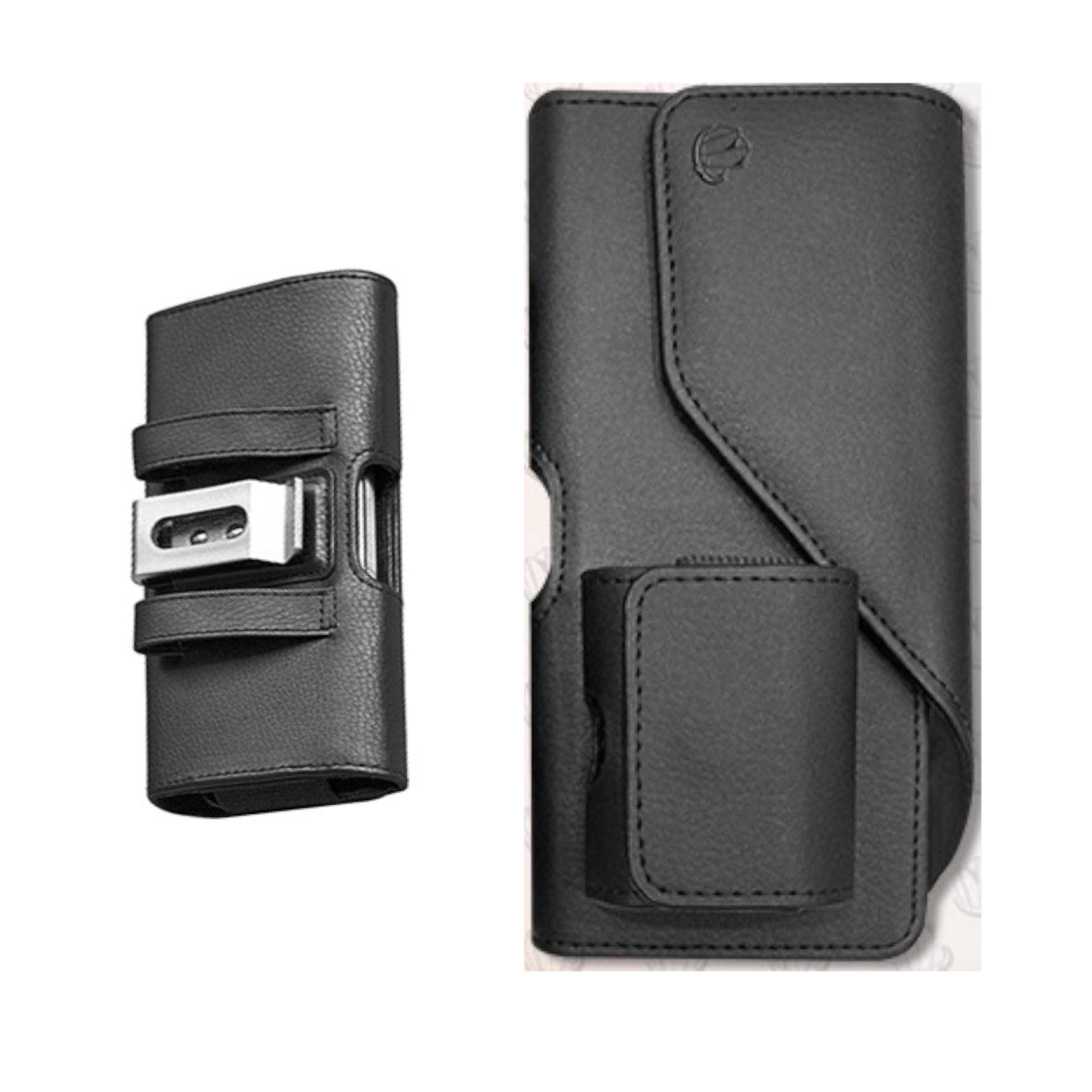 For Horizontal Leather Universal Pouch 2in1 Dual Phone Holster with Airpods Holder, Metal Belt Clip Loop Holder Cover For Device Size 6.7" Case Cover Black