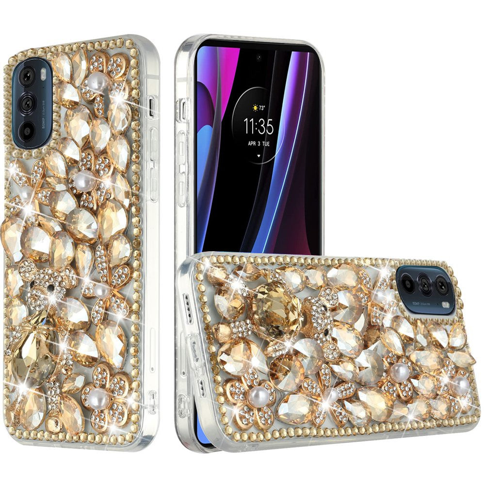 For Motorola Edge+ 2022 /Edge Plus Bling Clear Crystal 3D Full Diamonds Luxury Sparkle Rhinestone Hybrid Protective Gold Panda Floral Phone Case Cover