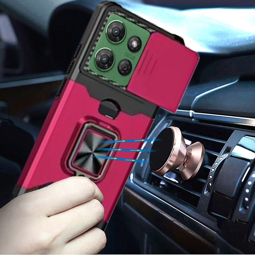 Hot Pink Phone Case Cover For Moto G 5G (2025), Moto G (2025) Premium Military Grade Drop Protection with Card Holder Slot and Camera Cover Slide, Heavy Duty Rugged Shockproof Phone Cover Built in Ring Stand Holder. Precise Cutouts & Sensitive Buttons Easily access buttons, speaker, camera, charging interface at the precise cutouts made from precision molding