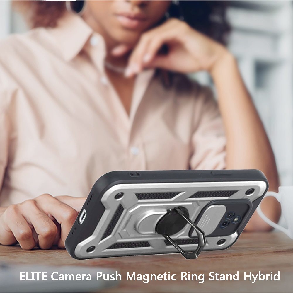 Motorola Moto G Play 2021 Hybrid Cases with Slide Camera Lens Cover and Ring Holder Kickstand Rugged Dual Layer Heavy Duty