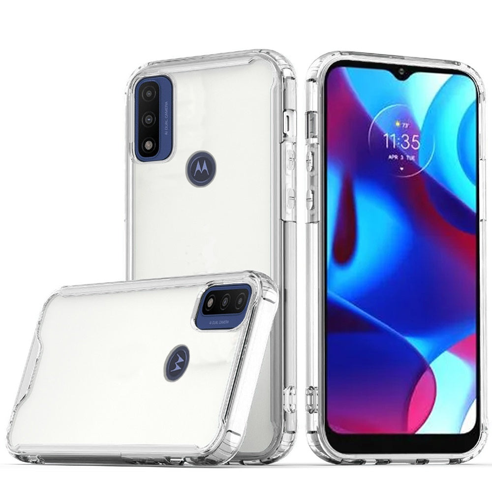 For Motorola Moto G Pure Colored Shockproof Transparent Hard PC + Rubber TPU Hybrid Bumper Shell Thin Slim Protective Phone Case Cover