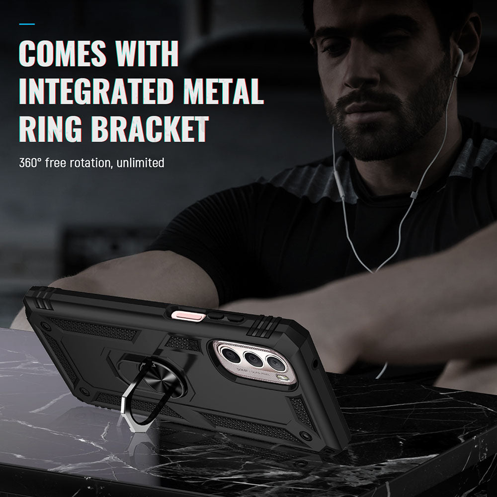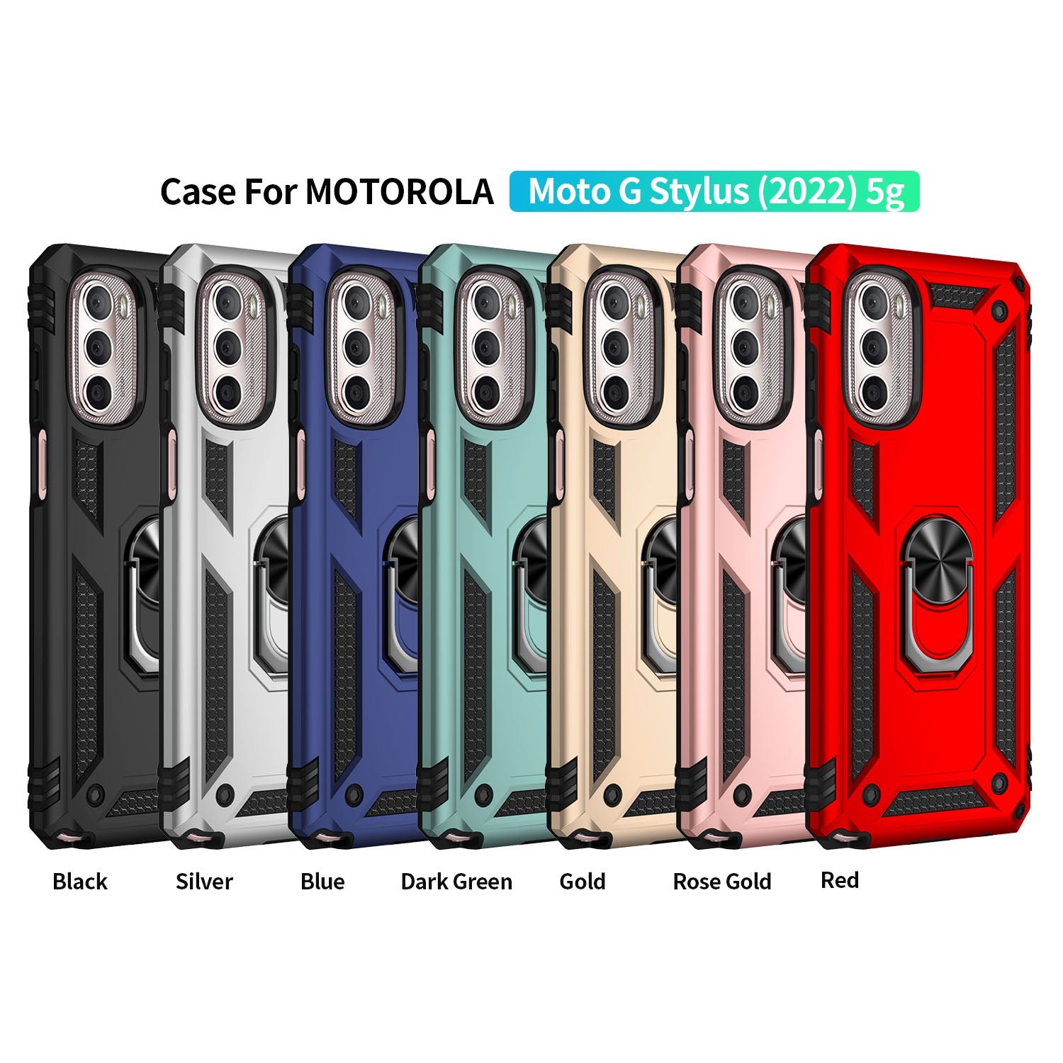 For Motorola Moto G Stylus 5G 2022 Hybrid 3in1 Holster Combo Belt Clip Armor Rugged with Ring Kickstand Shock-Absorption Black Phone Case Cover