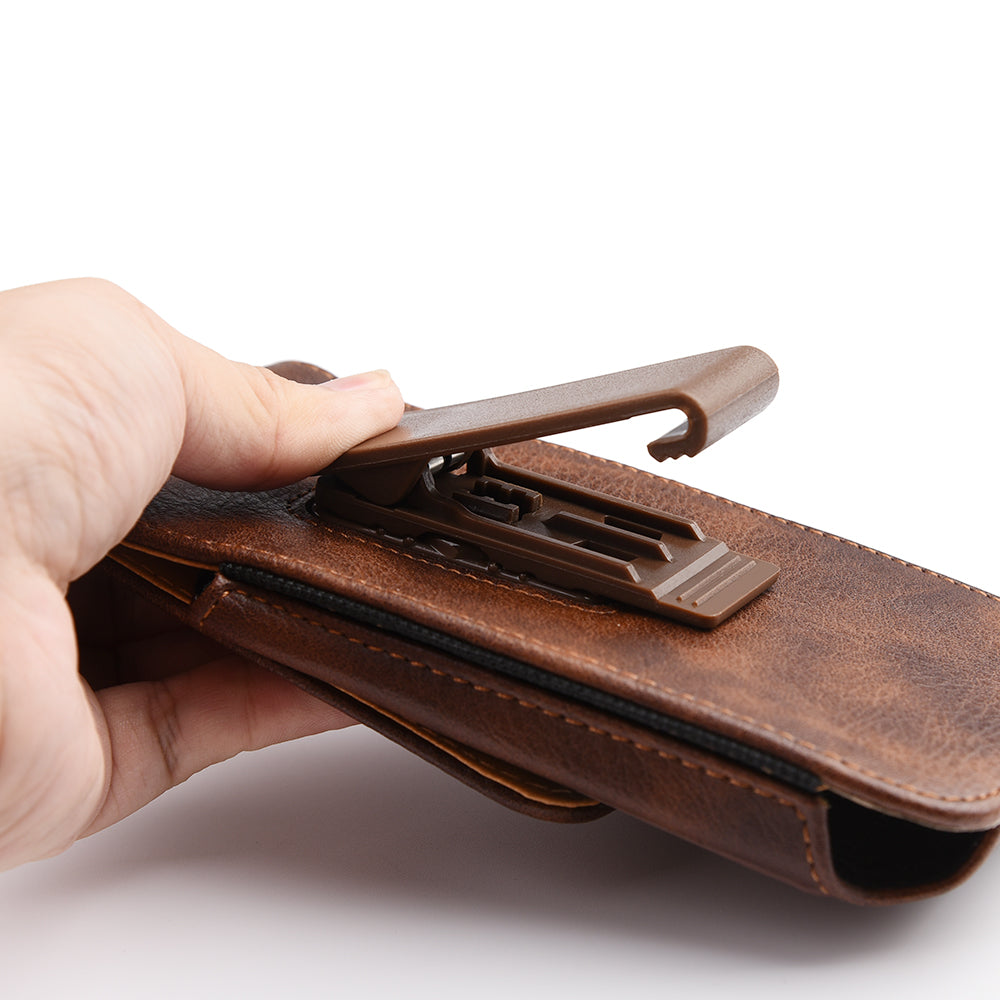 Brown Universal Vertical Pouch Case Phone Holder with Belt Clip, Built in Credit Card Slots and Magnetic Closure Carrying on Pouch Cover Fit Large Phone Device