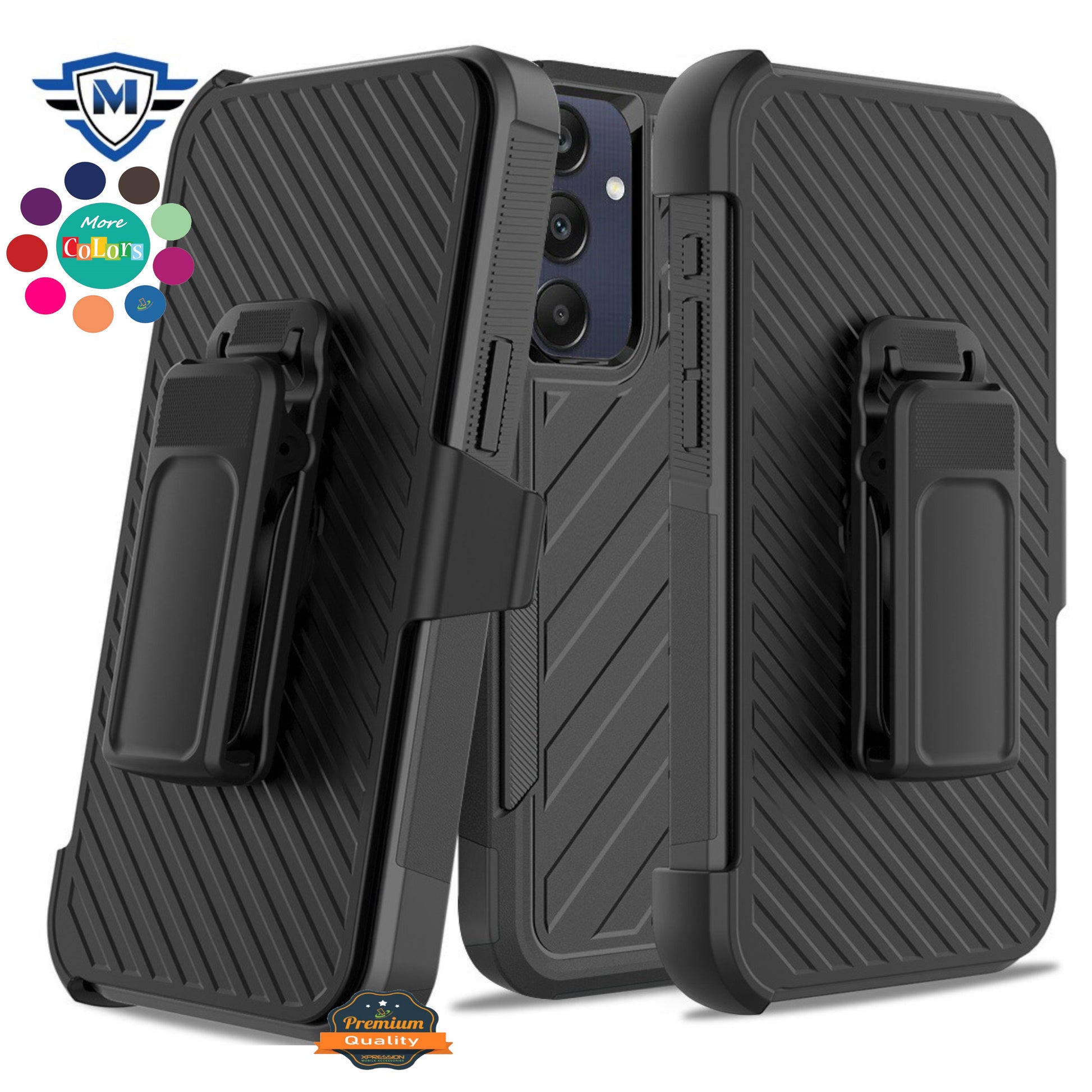 Safeguard your phone with this Premium Metkase Design, hybrid case featuring a rugged, shockproof design for ultimate durability. Equipped with a convenient belt clip holster, this case allows easy carrying and accessibility. The textured non-slip surface provides a secure grip, while the 2-in-1 functionality includes a detachable holster that doubles as a stand for hands-free viewing. Crafted for a perfect fit, the case includes precise cutouts for ports, buttons, and the camera, offering full functionality without compromising protection. Designed for tough use, this case is ideal for daily wear and tear.