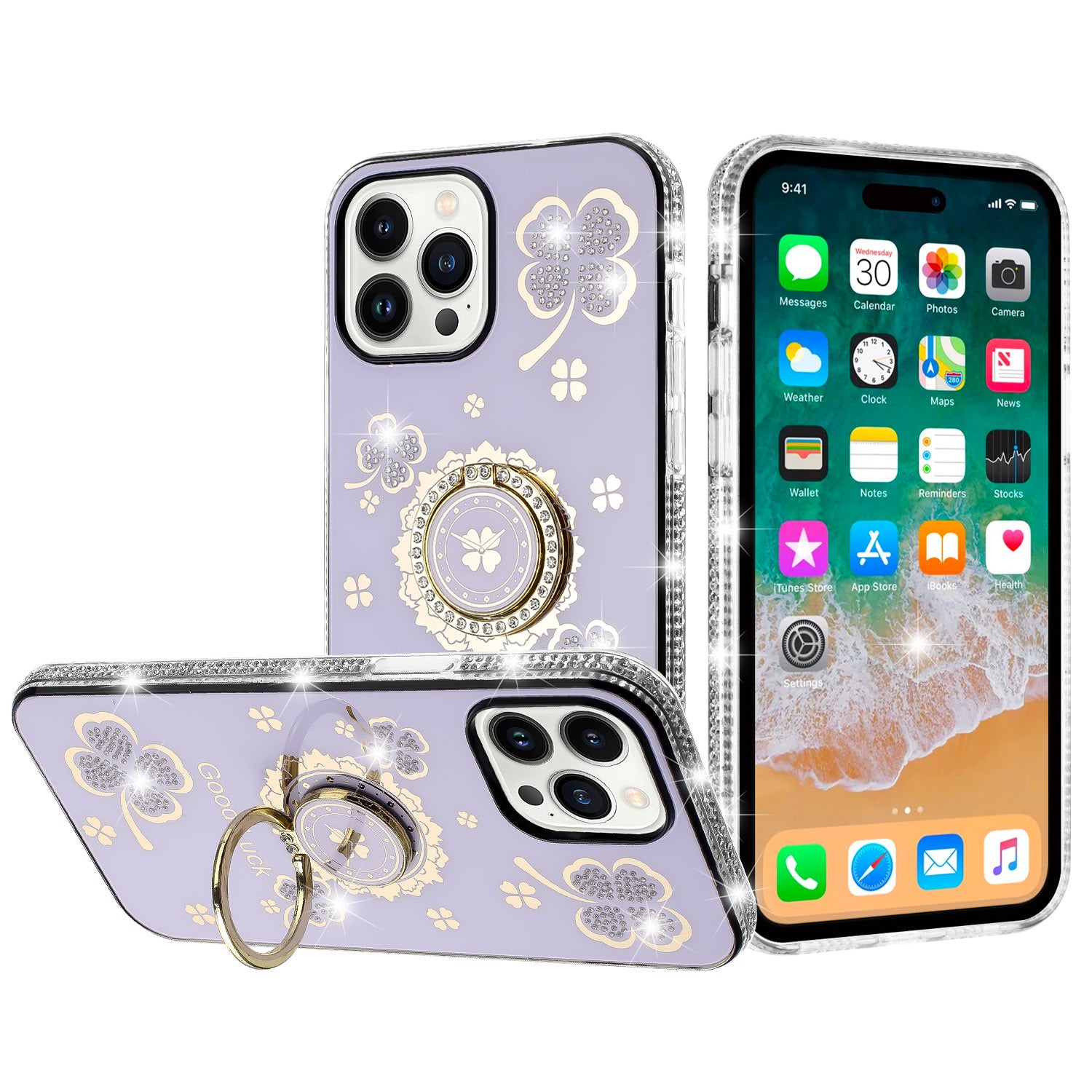 • Gorgeous Ornament Crystal Heart Ring Stand allows you to prop up your phone for handsfree viewing and you can also slide your finger through the ring for a firm grip on the phone