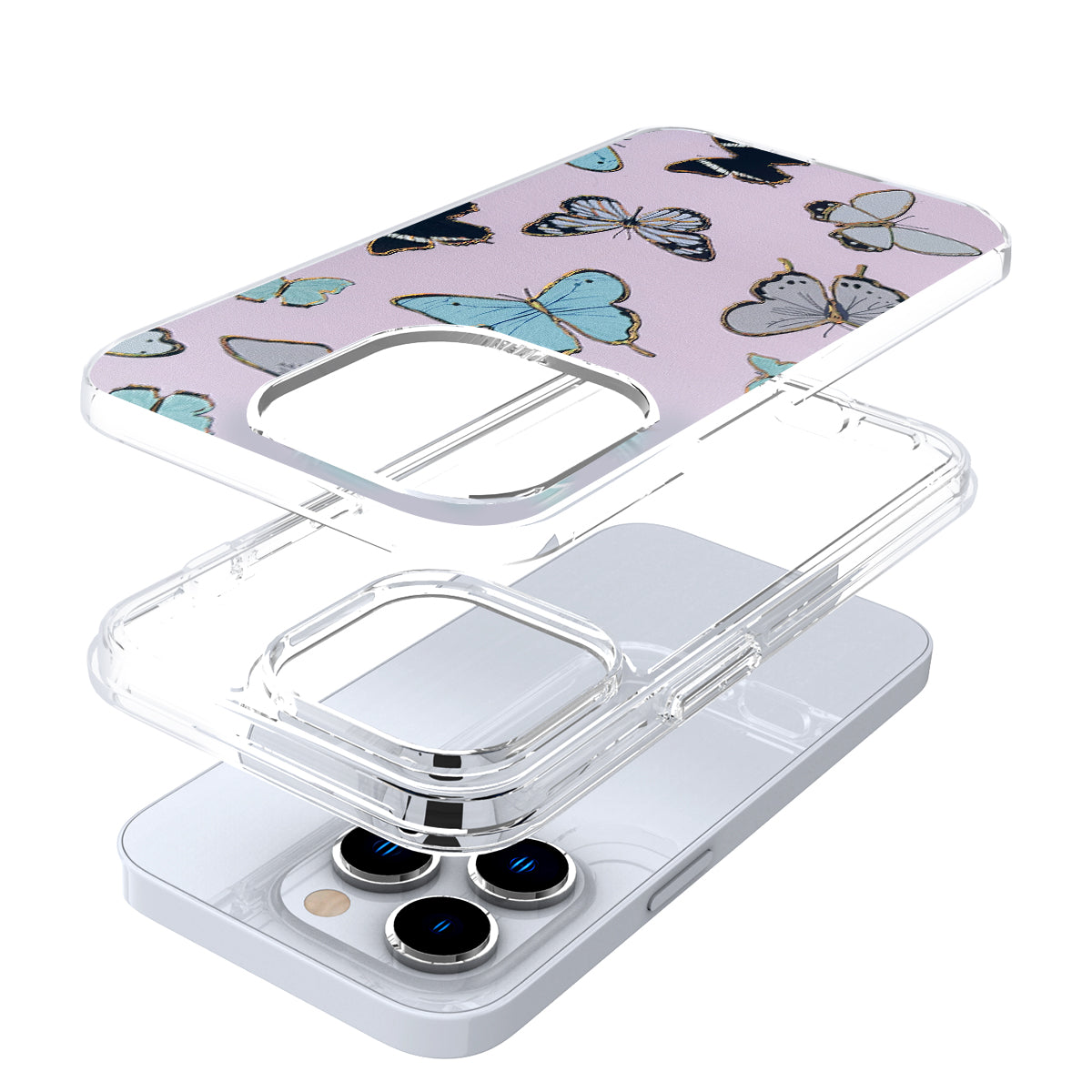Butterflies Premium Pattern Design Fashion Stylish Cases Hybrid Armor Defender TPU Rubber Soft Silicone + Hard PC Lightweight Gummy Protective Shockproof Phone Cover
