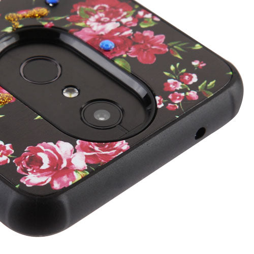 Romantic Love Flowers Premium Pattern Design with Bling Stylish Cases Hybrid Armor Defender TPU Rubber Soft Silicone + Hard PC Lightweight Gummy Protective Shockproof Phone Cover