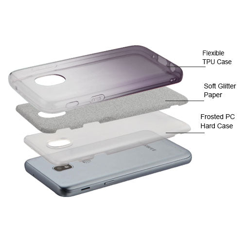 For Samsung Galaxy J3 V /J3 3rd Gen /Galaxy Express Prime 3 Stylish Gradient Glitter Design Hybrid Rubber TPU Hard PC Slim Silver Black Phone Case Cover
