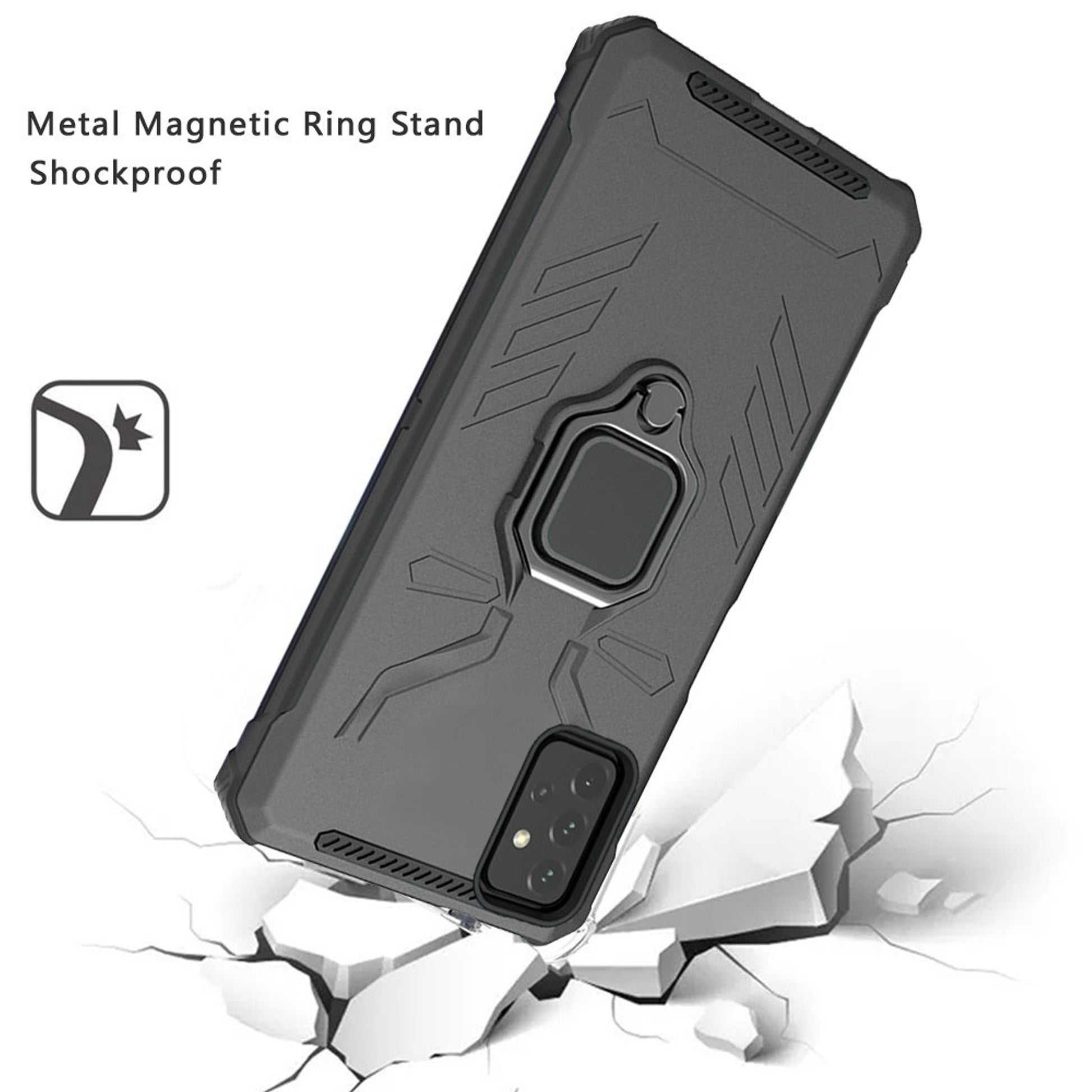 • Metal Kickstand and Magnet: Humanized design,Built-in folded bracket,kickstand is perfect for viewing, for hands-free movie viewing, video, pictures, etc.Metal ring can release your hand to ensure a phone safe. Magnet can put on navigation holder when you drive a car. To give you a safer and more convenient trip. (Not includes the magnetic car mount holder)