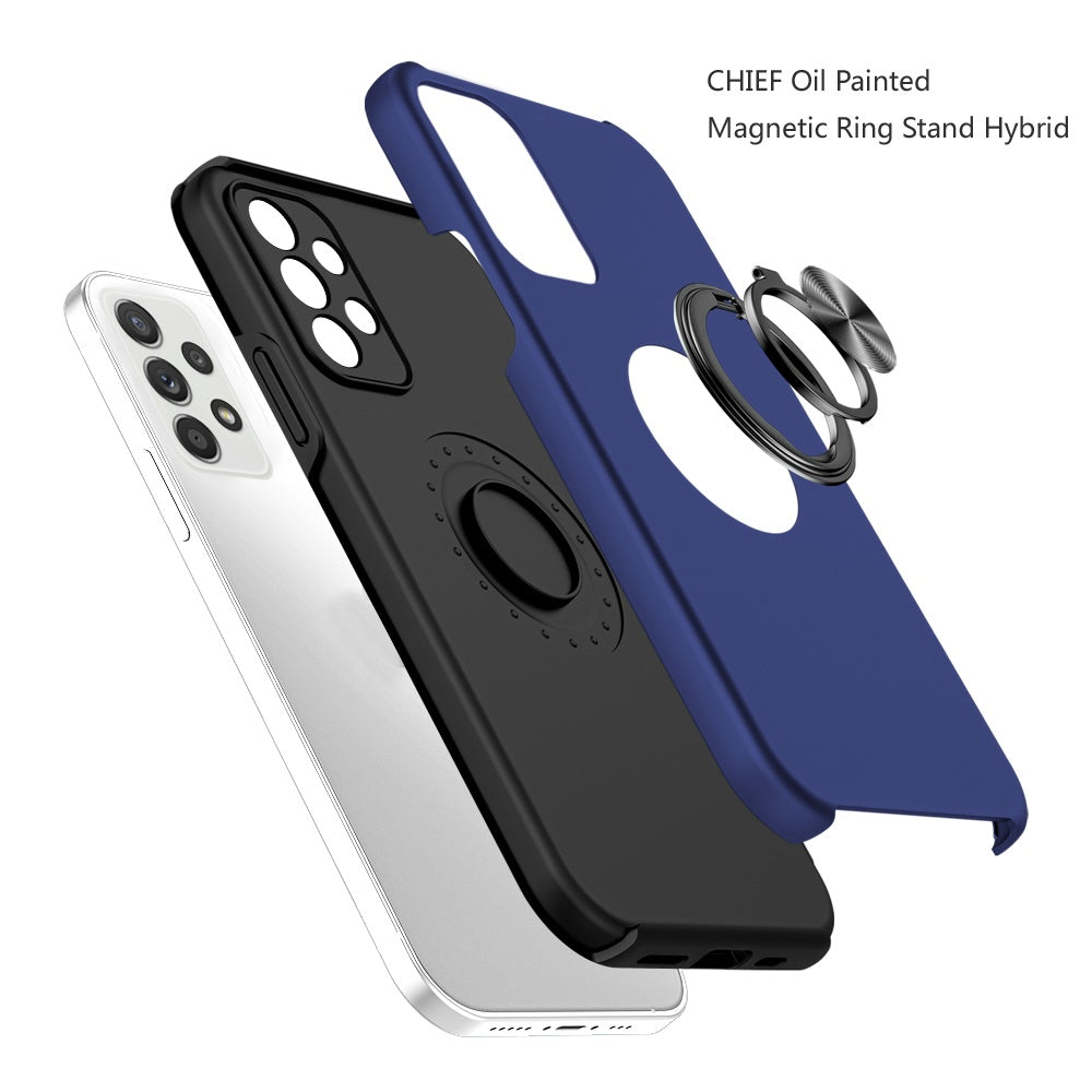 Blue Phone Case Cover For Galaxy S21 FE /Fan Edition Protect your phone in style with the CHIEF Oil Painted Magnetic Ring Stand Hybrid Case Cover. This stunning hybrid case features a unique oil-painted design, offering a sleek look that stands out while providing robust protection for your device. The built-in magnetic ring stand allows you to easily mount your phone to any magnetic surface, providing added convenience. The shockproof, hybrid design ensures your phone stays safe from drops, scratches, and daily wear.
