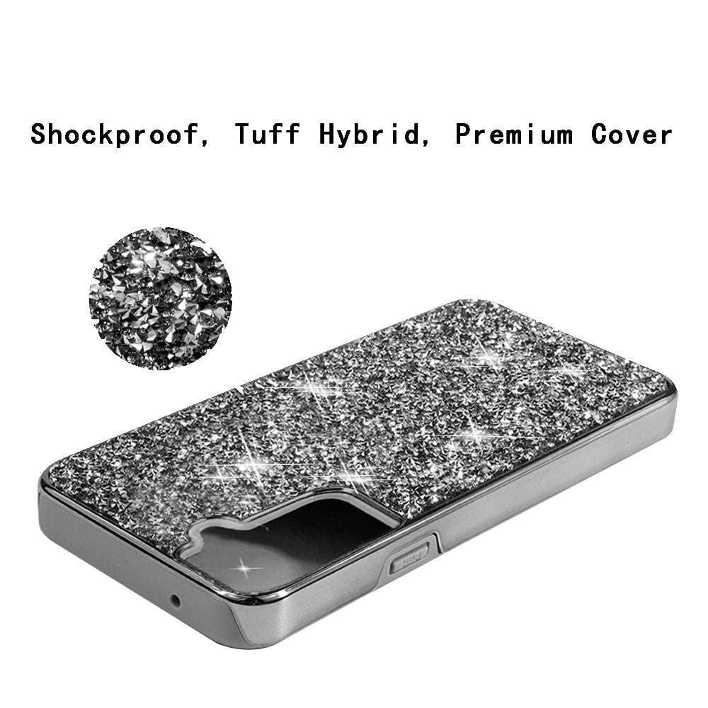 For Samsung Galaxy S22 /Plus Ultra Bling Rhinestone Diamond Shiny Glitter Hybrid Bumper Dual Layer Defender Rugged Shell Hard Rubber Phone Case Cover