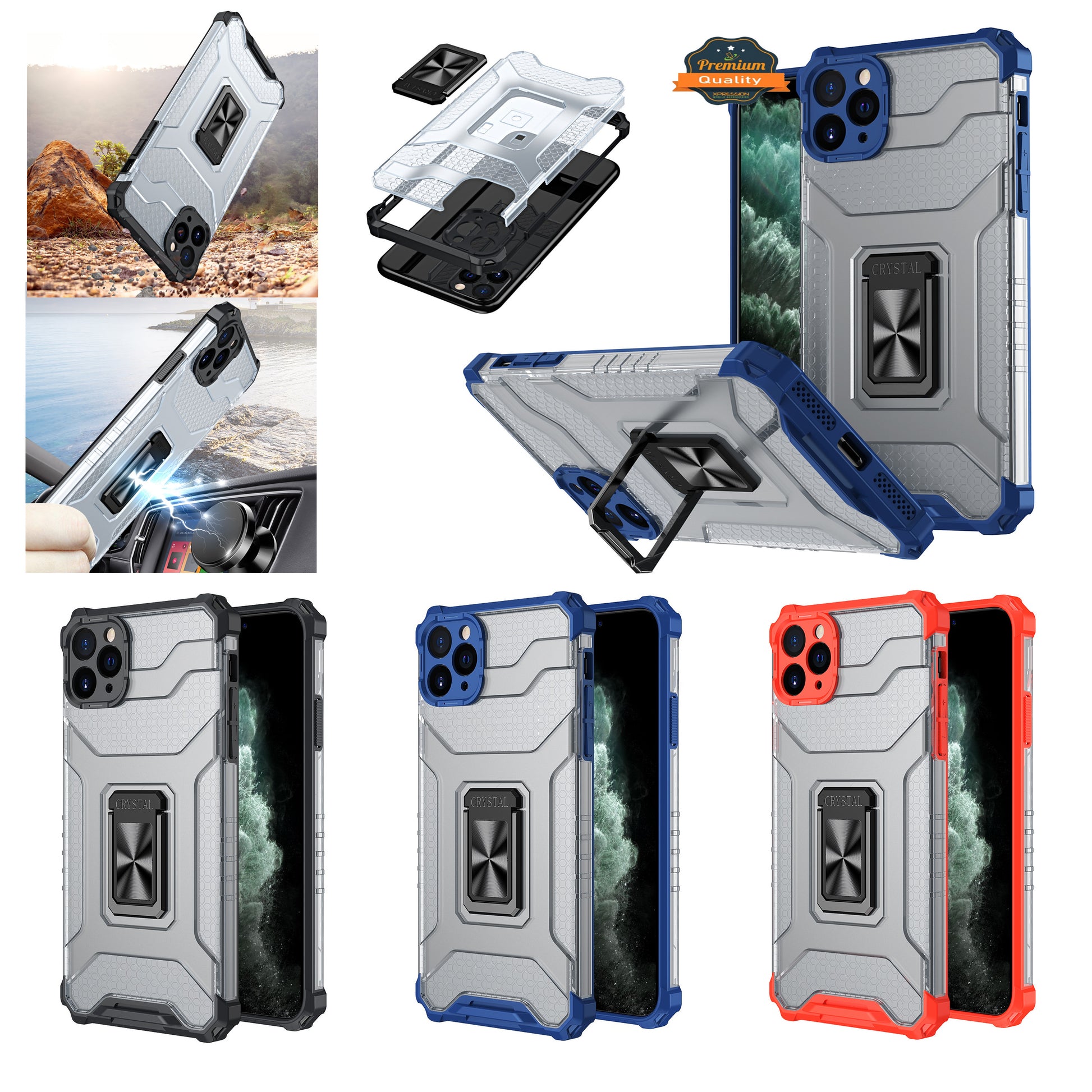 Shockproof Soft Silicone + Hard PC Armor Cover with 360 Degree Rotation Ring Holder Kickstand Compatible Magnetic Car Mount