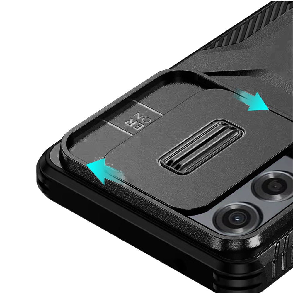 For Samsung Galaxy S23 FE /Fan Edition Shockproof Hybrid with Slide Camera Window Covering, Rugged Tpu Silicone Hard PC Bumper Case Cover Black
