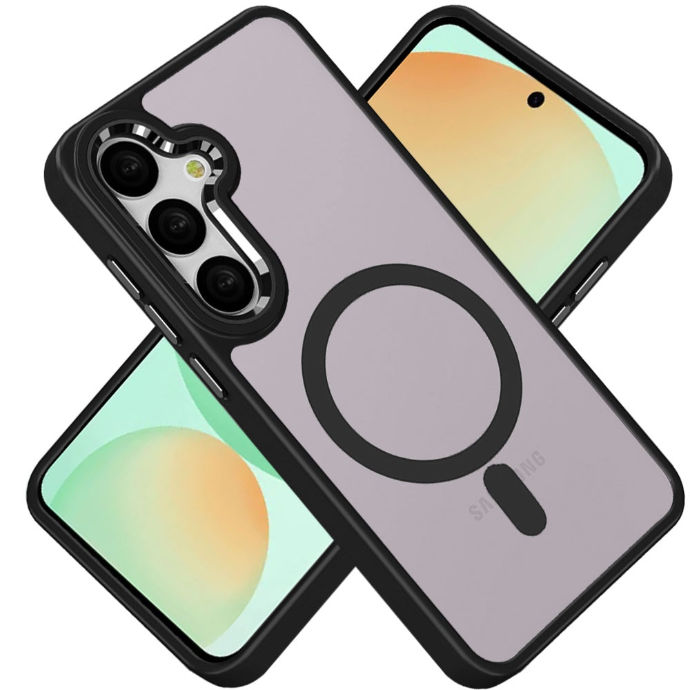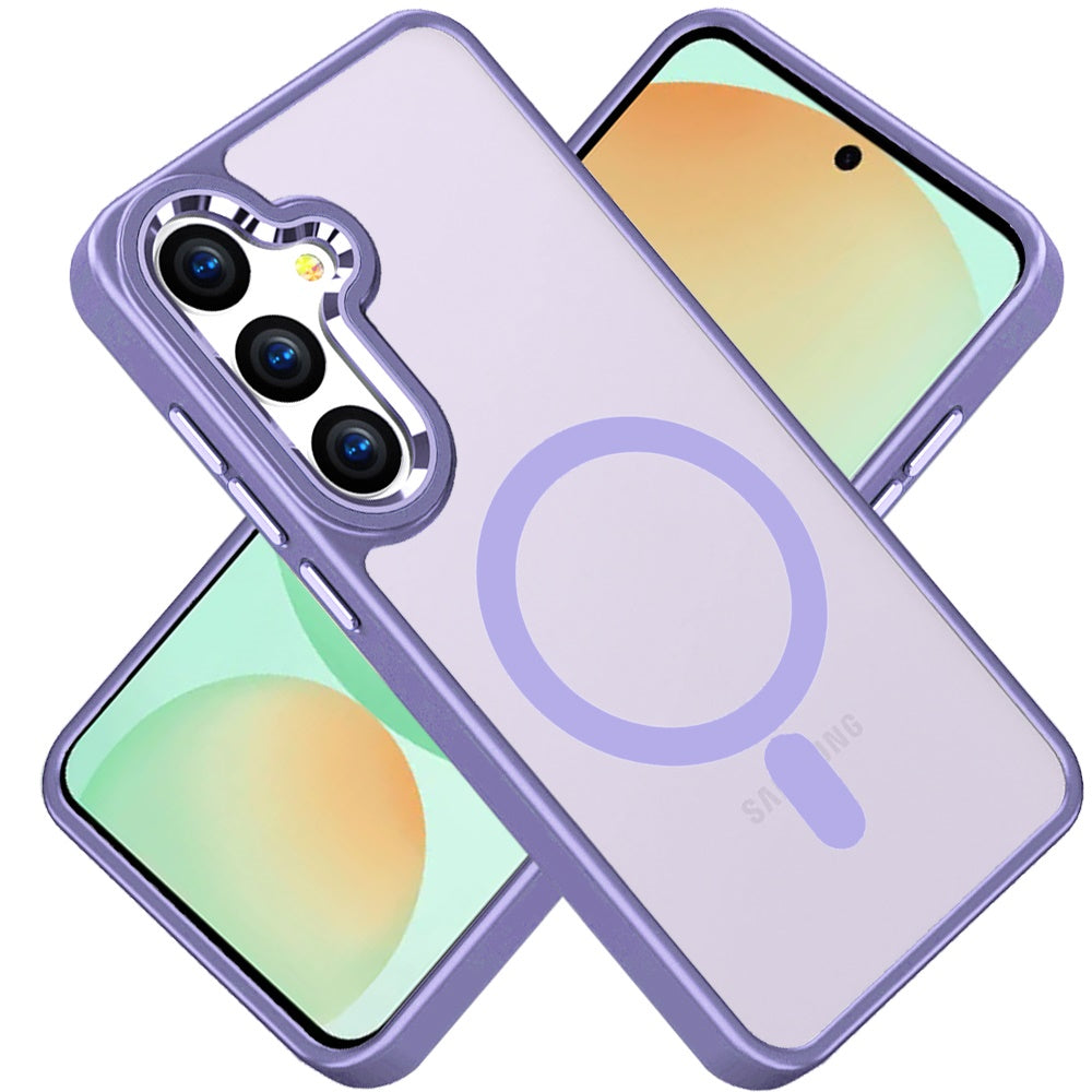 Cell Phone Case For Samsung Galaxy S24 FE Magnetic Case with MagSafe Compatible HD Clear Acrylic Thick Metal Button Hybrid Shock-Absorption Colorful Bumper Slim Fit Hard PC TPU Rubber Cover. Support for Magsafe Accessories: The case is equipped with a magnet ring, which can be automatically aligned with the Magsafe wireless charger, and then provide effective and easy 360 degree rotating charging for your phone anytime and anywhere without removing the phone case.