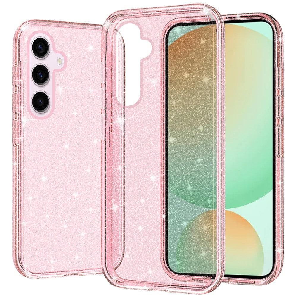 For Samsung Galaxy S24 FE /Fan Edition Transparent Crystal Glitter Shiny Sparkle Bling TPU Rubber Hard PC Back Hybrid Armor Frame Case Cover