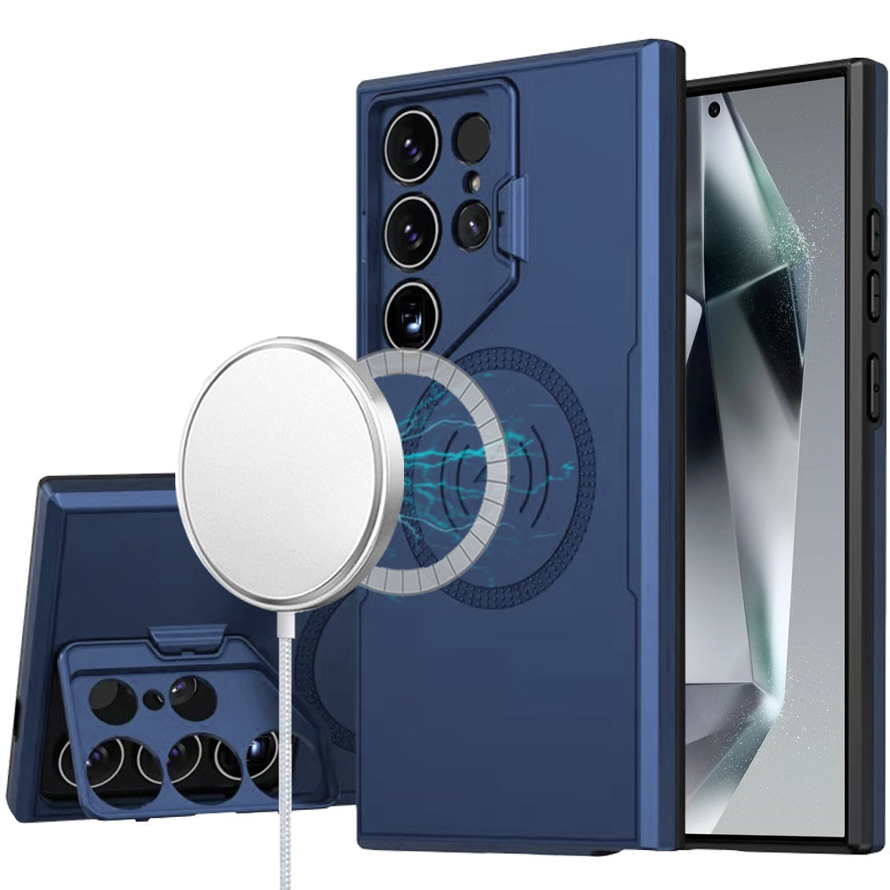 For Samsung Galaxy S24 Ultra Foldable Kickstand Camera Protector Dual Layer Hybrid MagSafe Compatible Bumper Magnetic Case Cover