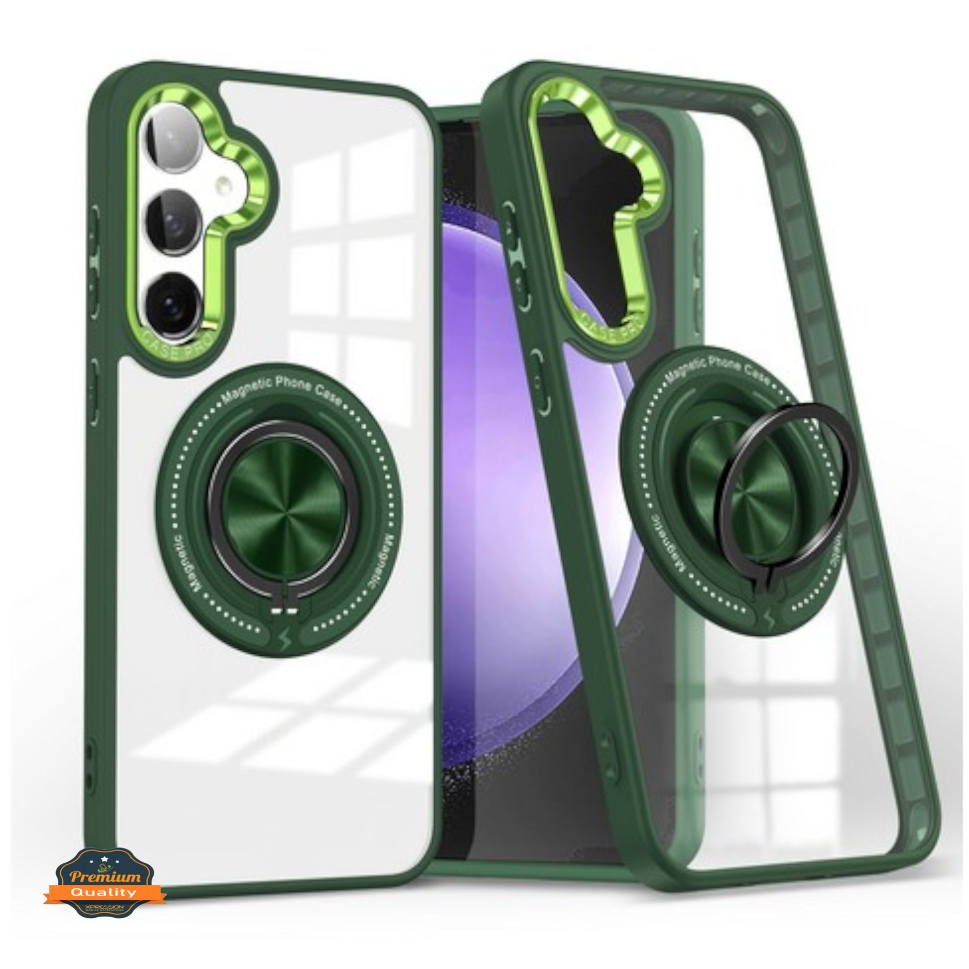 • Compatible for Samsung Galaxy S25 Edge, Clear transparent back highlights your phone's original design, Built-in rotating ring stand provides hands-free viewing convenience, MagSafe compatible for wireless charging and magnetic accessories, Slim hybrid design combines durable TPU and hard PC materials, Shockproof protection guards against drops; impacts; and scratches