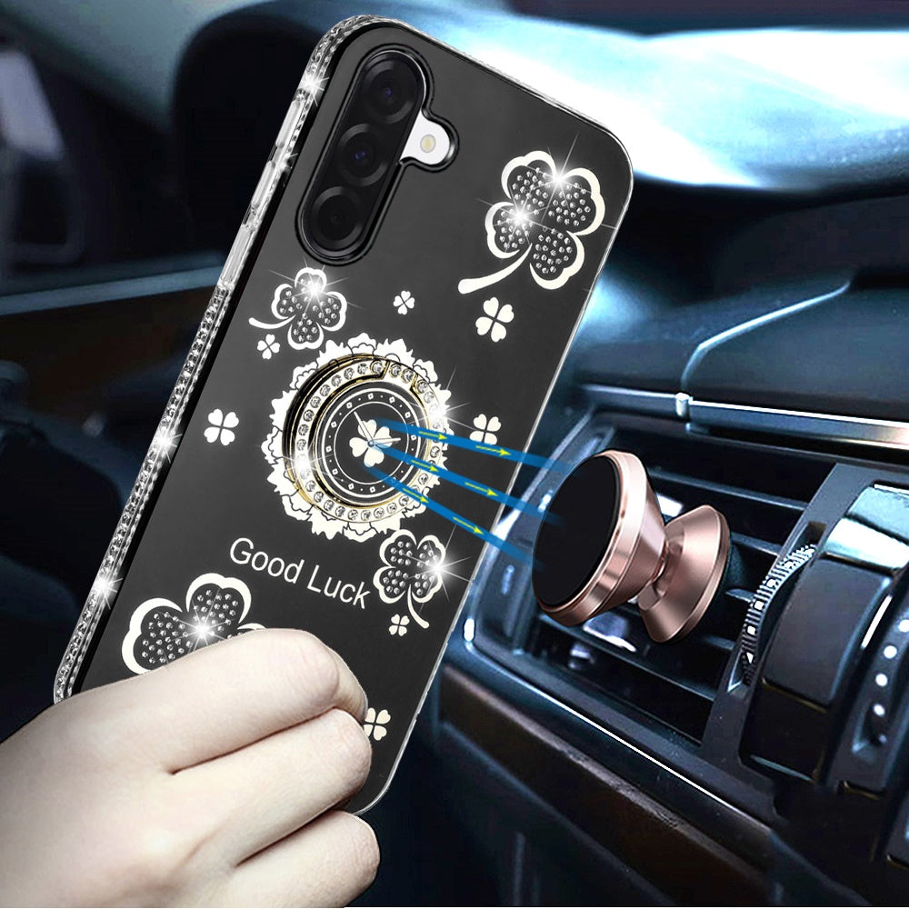 Black Phone Case Cover For Galaxy S25 FE Fan Edition Slim Luxury Bling Rhinestone Glitter All Around Edges Crystal Diamonds Love Floral Design TPU Case With Ring Stand Hybrid Shockproof Phone Case. Easy Carry Ring Stand Holder - Case includes a full 360 Degree rotating ring kickstand that allows for multiple holding positions and convenient sidestand viewing. Ring center is magnetic making it perfectly compatible with magnet mounts.