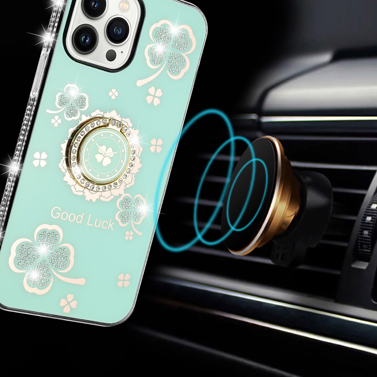 Teal Phone Case Cover For Galaxy S25 FE Fan Edition Slim Luxury Bling Rhinestone Glitter All Around Edges Crystal Diamonds Love Floral Design TPU Case With Ring Stand Hybrid Shockproof Phone Case. Easy Carry Ring Stand Holder - Case includes a full 360 Degree rotating ring kickstand that allows for multiple holding positions and convenient sidestand viewing. Ring center is magnetic making it perfectly compatible with magnet mounts.