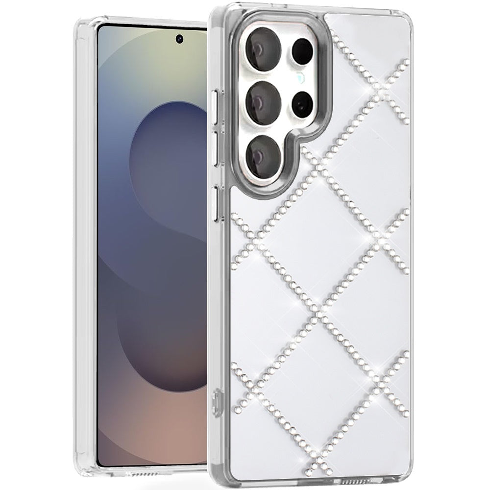 Silver Phone Case Cover For Galaxy S25 FE Fan Edition Add sparkle and protection to your phone with this stylish gem glitter diamond case. Designed with a clear back and colorful accents, this hybrid TPU cover offers both beauty and defense. The slim profile fits comfortably in your hand while the shock-absorbing TPU protects against drops and bumps. Precise cutouts ensure easy access to all features, while raised edges safeguard your screen and camera. Perfect for women and girls looking for both fashion and functionality.