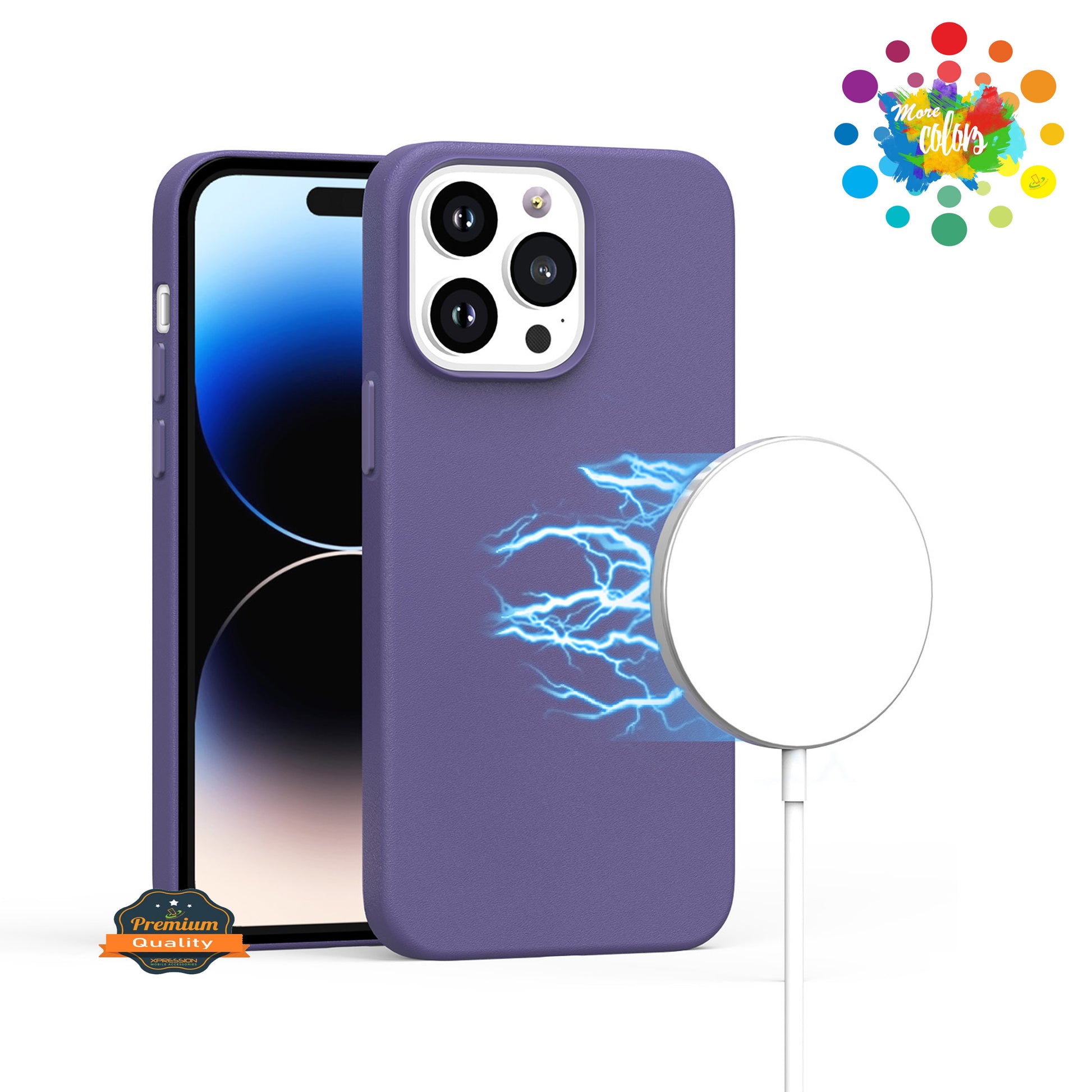• Slim Leather Luxury PU Non-Slip Grip Shockproof Full Body Protective Cover Compatible with Magsafe Magnetic Charger Invisible Circle Case Protector