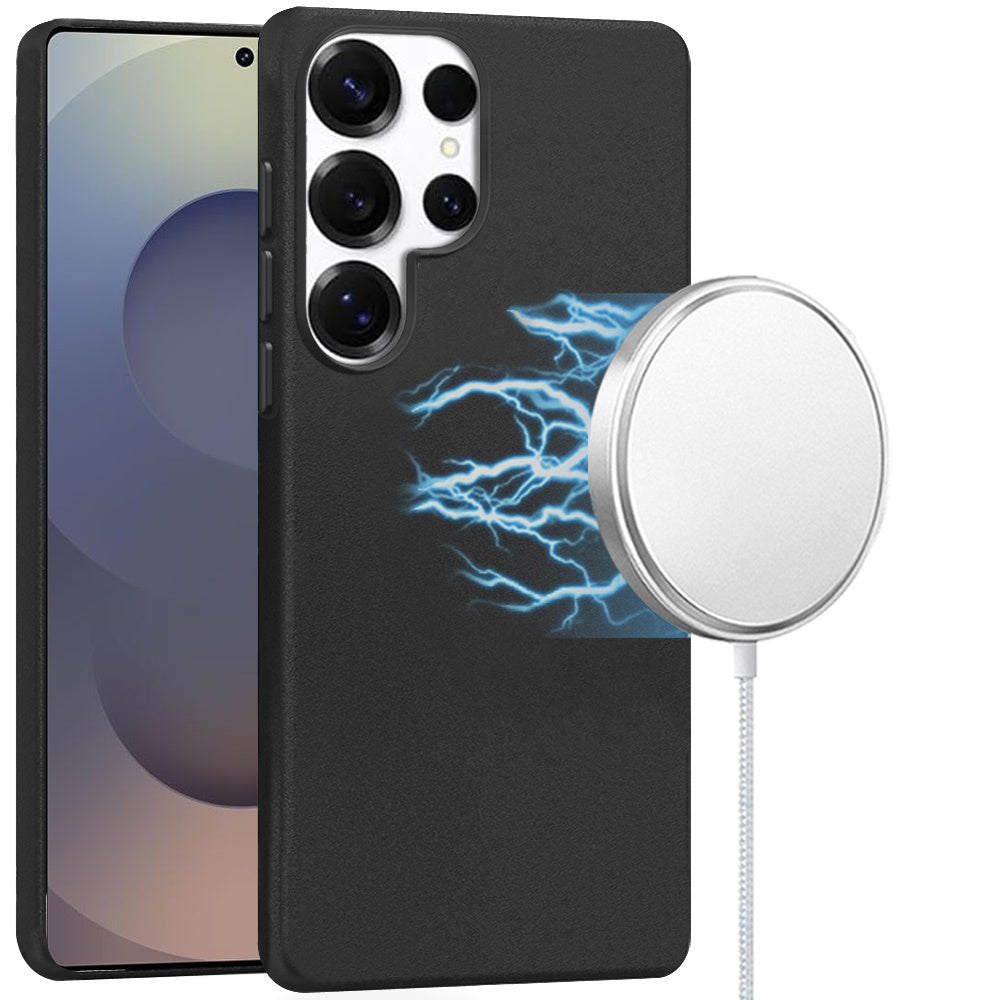 • Compatible for Samsung Galaxy S25 Ultra, MagSafe compatible for seamless wireless charging, Premium PU leather exterior offers a stylish and comfortable grip, Invisible MagSafe circle enhances magnetic attachment without disrupting design, Hybrid construction combines durability and flexibility for superior protection, Raised edges help protect the camera and screen from scratches, Slim and lightweight design ensures easy handling and pocket-friendly convenience