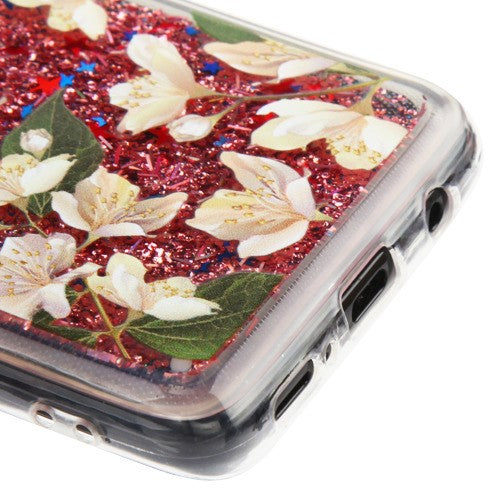 Sally Flower Luxury Fashion with Moving Shiny Quicksand Liquid Glitter and Double Protection with PC Layer and TPU Bumper Case