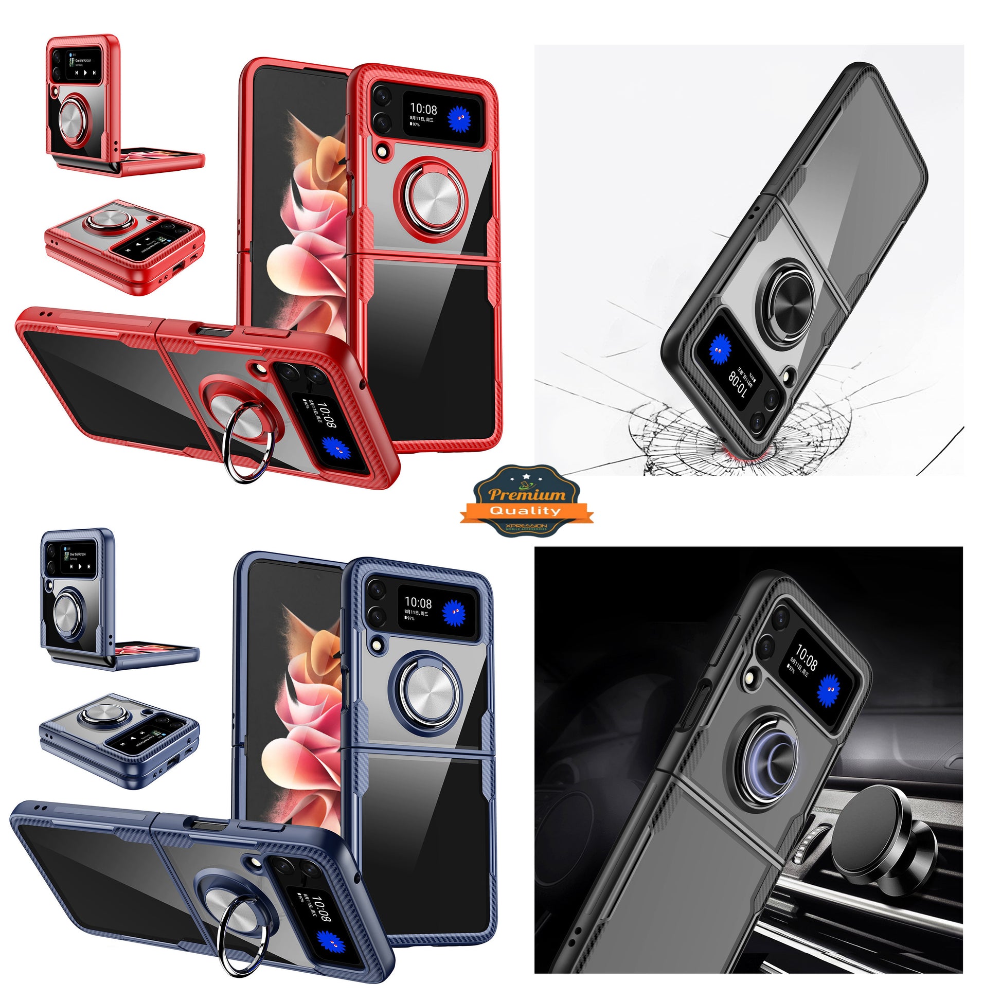 For Samsung Galaxy Z Flip 3 5G Clear Silicone Shockproof Tuff Hybrid Protection Cover Transparent TPU with Magnetic Ring Kickstand Phone Case Cover