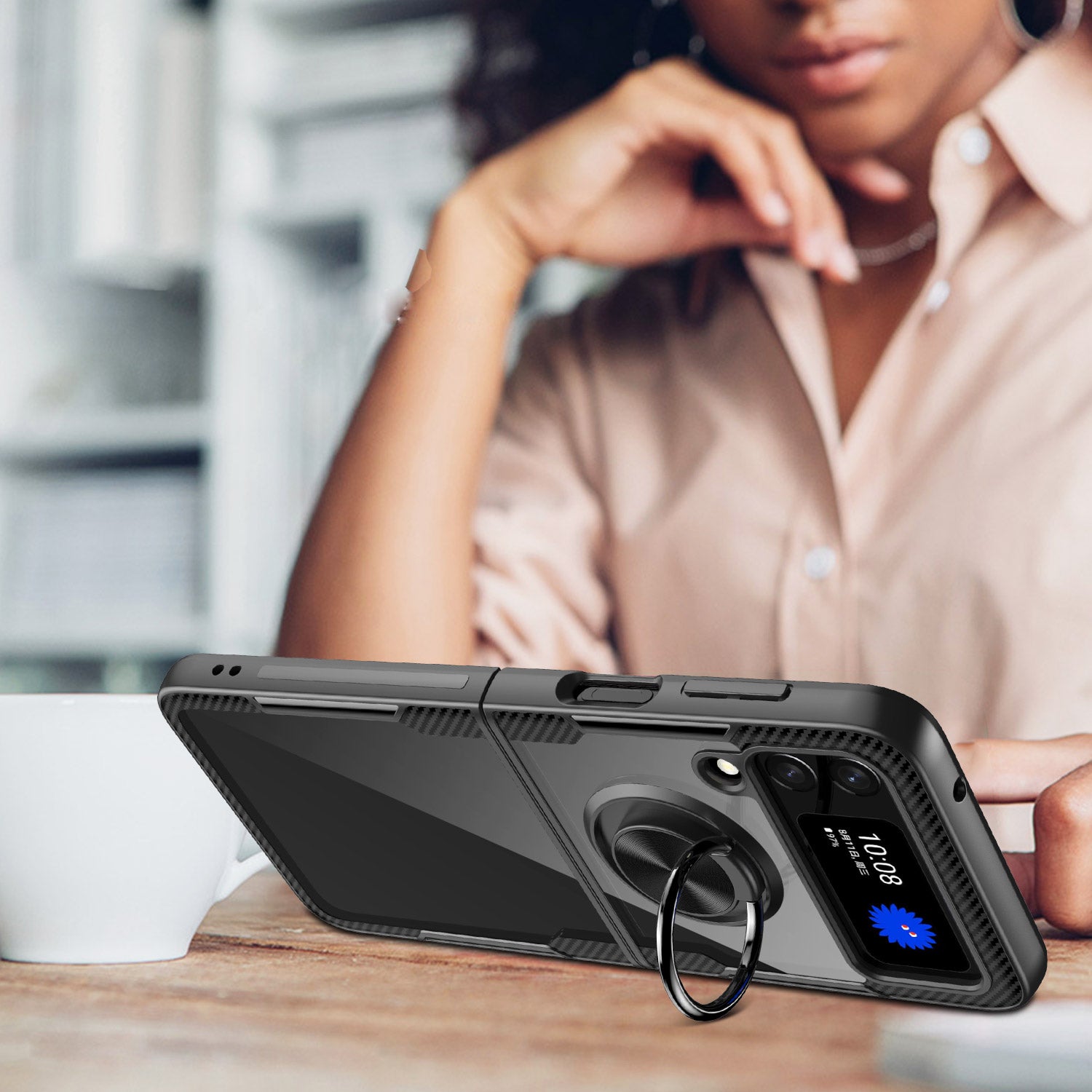 Samsung Galaxy Z Flip 3 5G Clear Silicone Shockproof Tuff Hybrid Protection Cover Transparent TPU with Magnetic Ring Kickstand