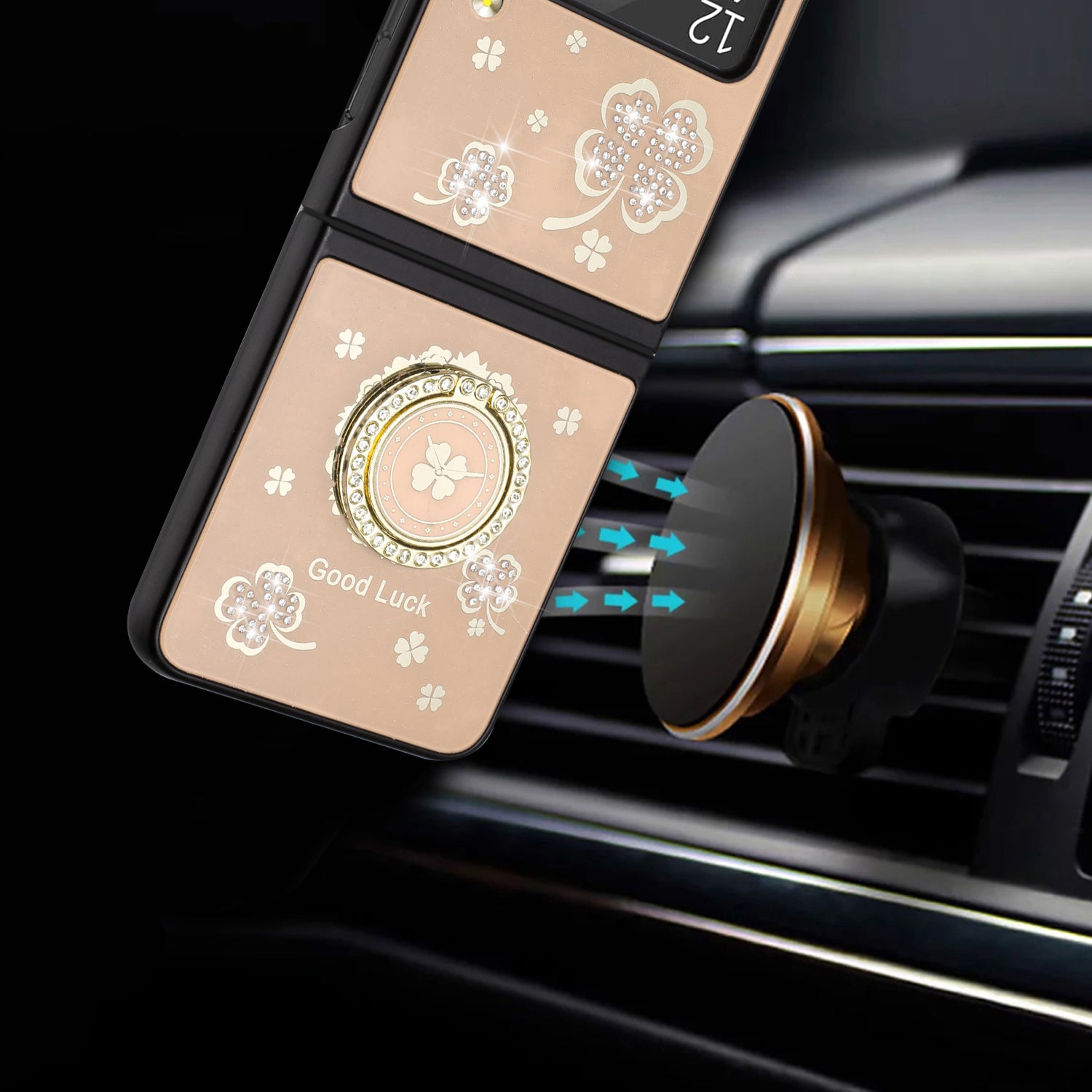 For Samsung Galaxy Z Flip 4 5G Diamond Bling Sparkly Glitter Ornaments Engraving Hybrid Ring Stand Fashion Phone Case Cover