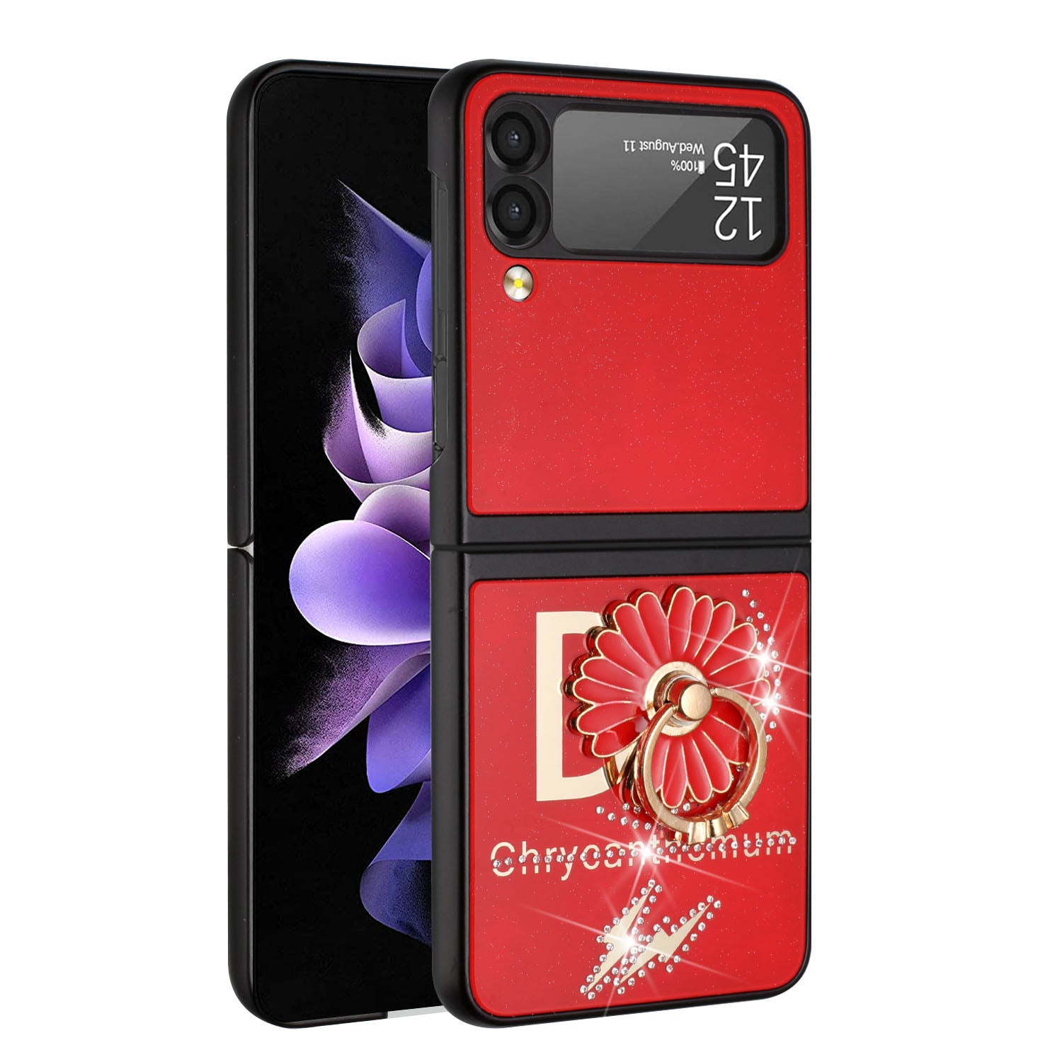 For Samsung Galaxy Z Flip 4 5G Diamond Bling Sparkly Glitter Ornaments Engraving Hybrid with Ring Stand Fashion Phone Case Cover