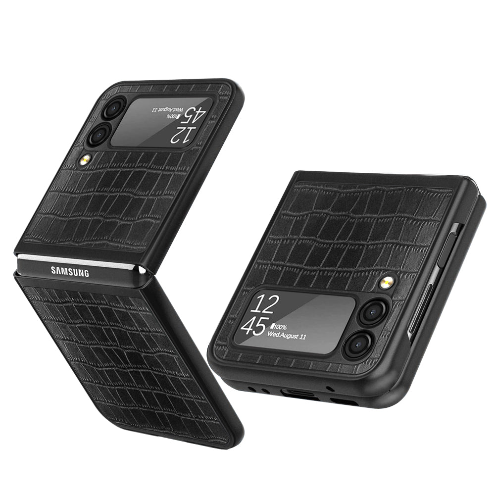 For Samsung Galaxy Z Flip 4 5G Ultra Slim Thin PU Leather Flip Snap On Hybrid Shockproof TPU PC Hard Shell Durable Phone Case Cover