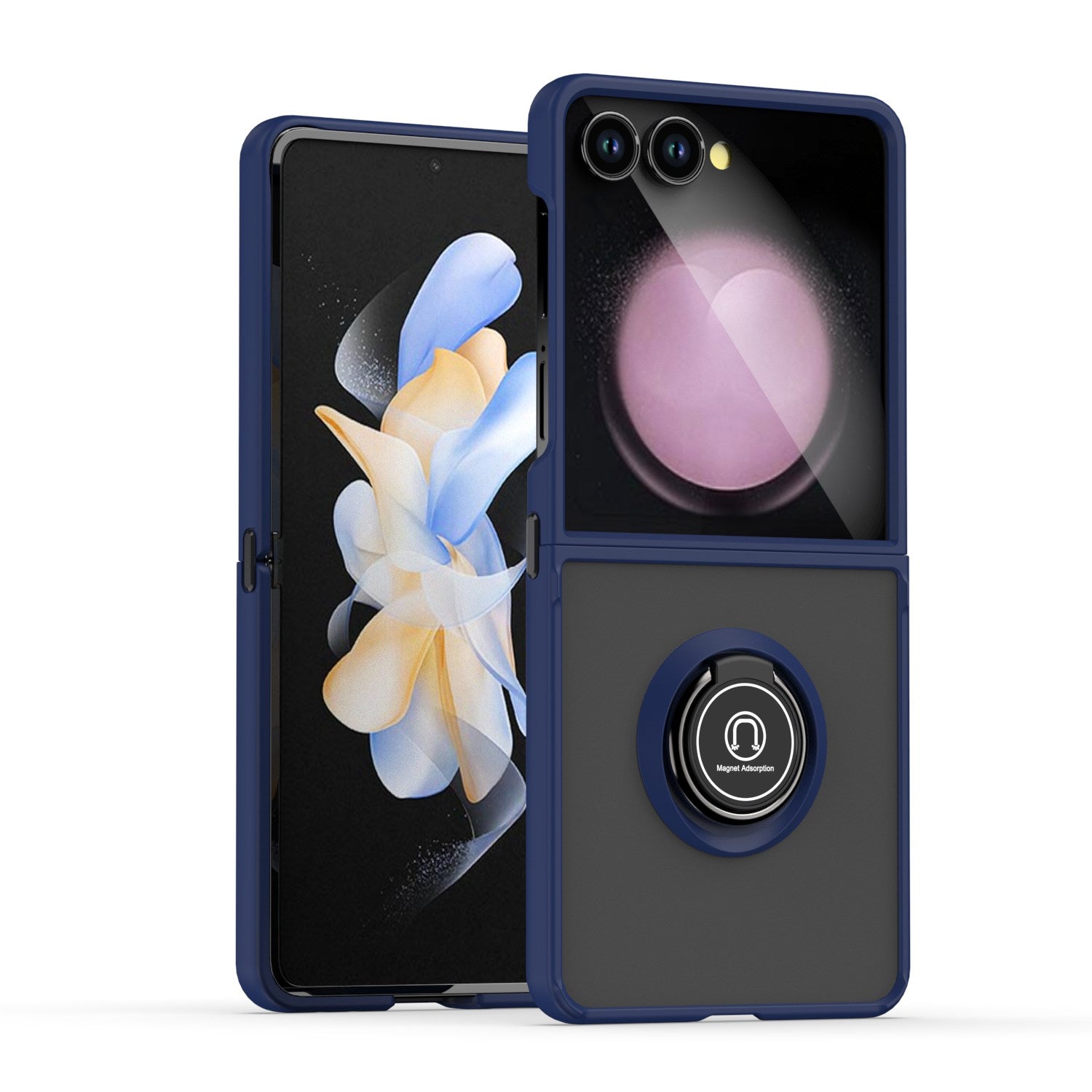 For Samsung Galaxy Z Flip 7 Semi Transparent Matte Hybrid Protective PC & TPU Shockproof with 360° Rotation Ring Stand Case Cover