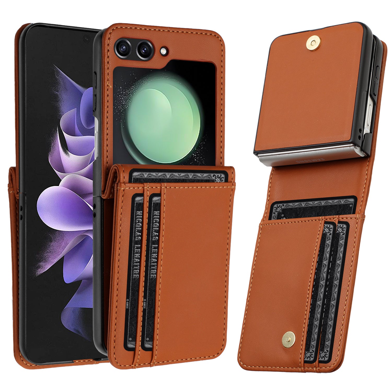 For Samsung Galaxy Z Flip 7 Wallet Case PU Leather Back Storage with Card ID Slot, Pocket Holder, Hybrid Protective Case Cover
