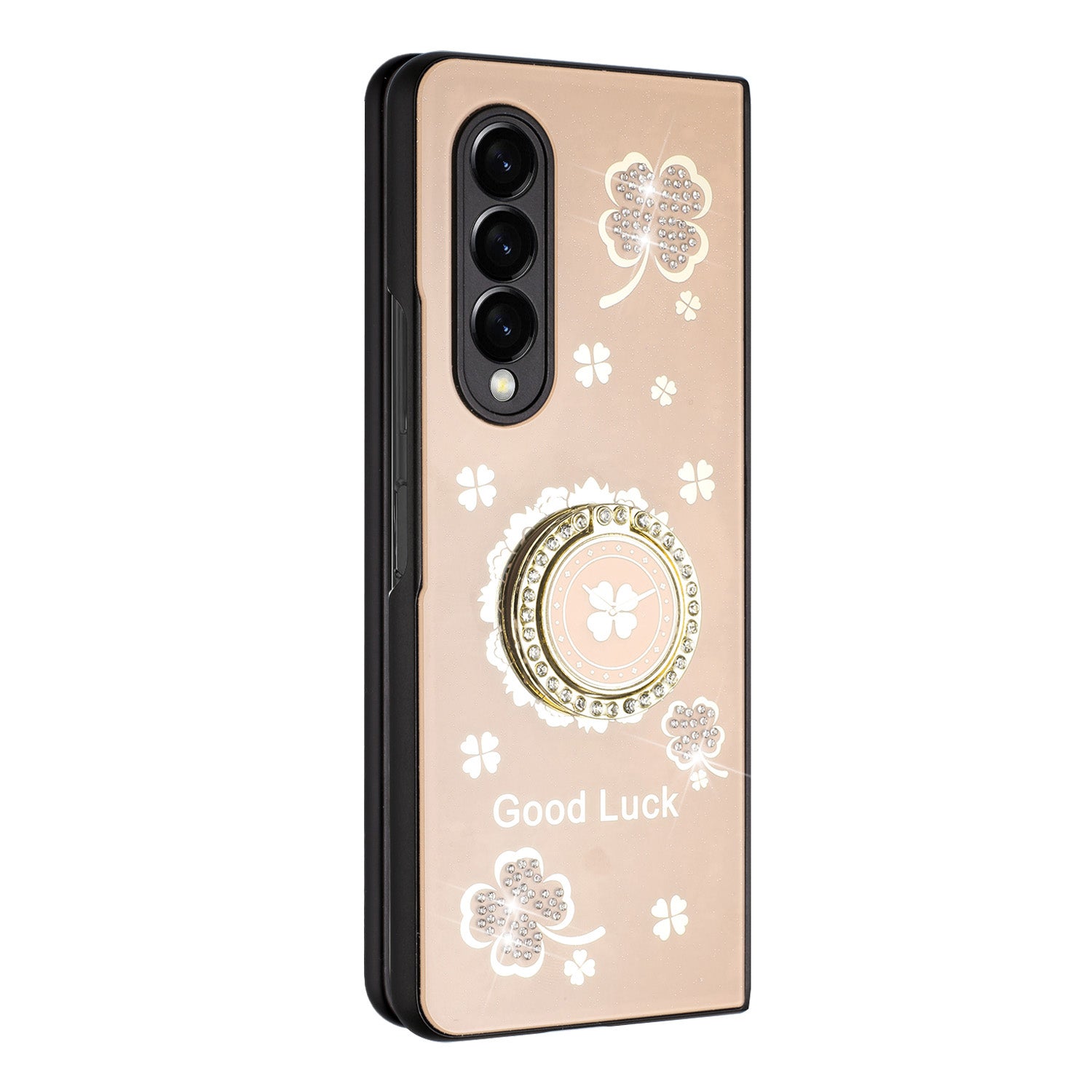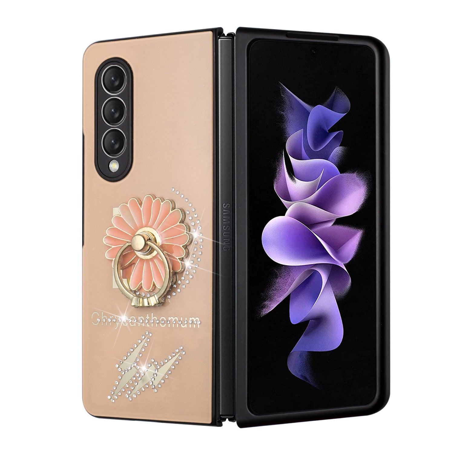 For Samsung Galaxy Z Fold 4 5G Diamond Bling Sparkly Glitter Ornaments Engraving Hybrid Ring Stand Fashion Phone Case Cover