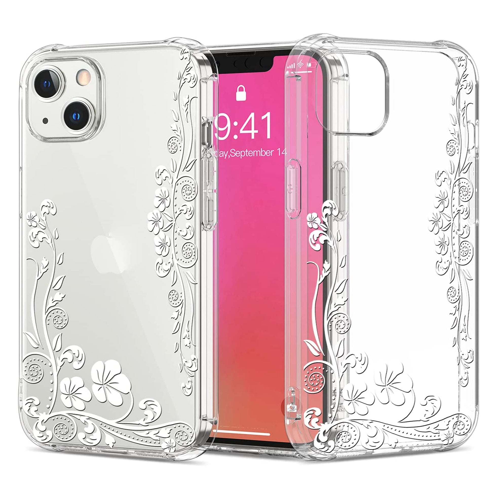 Hybrid Soft & Flexible TPU Rubber Silicone Shockproof Pattern Design Hard PC Back Clear Transparent Slim Trendy Protective Phone Case Cover
