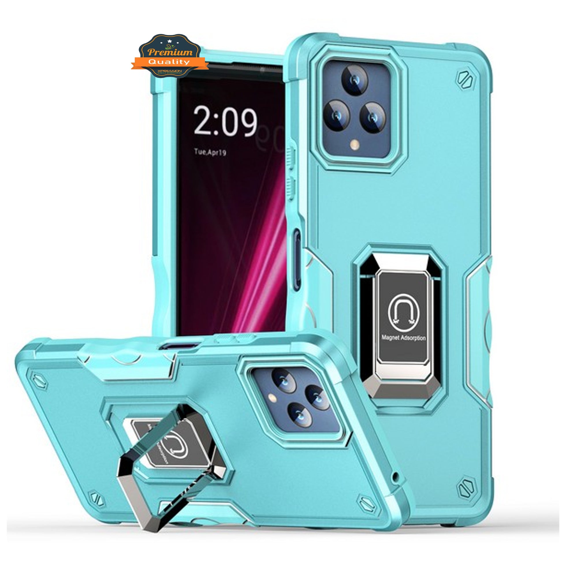 For T-Mobile Revvl 6 Pro 5G /Revvl 6 5G Hybrid 2 in 1 Hard PC TPU Heavy Duty Rugged Bumper Shockproof with Magnetic Ring Kickstand Phone Case Cover