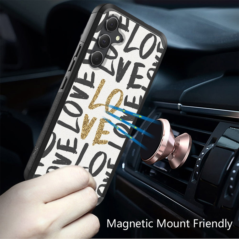 Fashion Pattern Design Heavy Duty Shockproof Protection Silicone Rubber Bumper + Hard Plastic Hybrid Dual Layer Protective Case Cover (Magnet Mount Friendly)