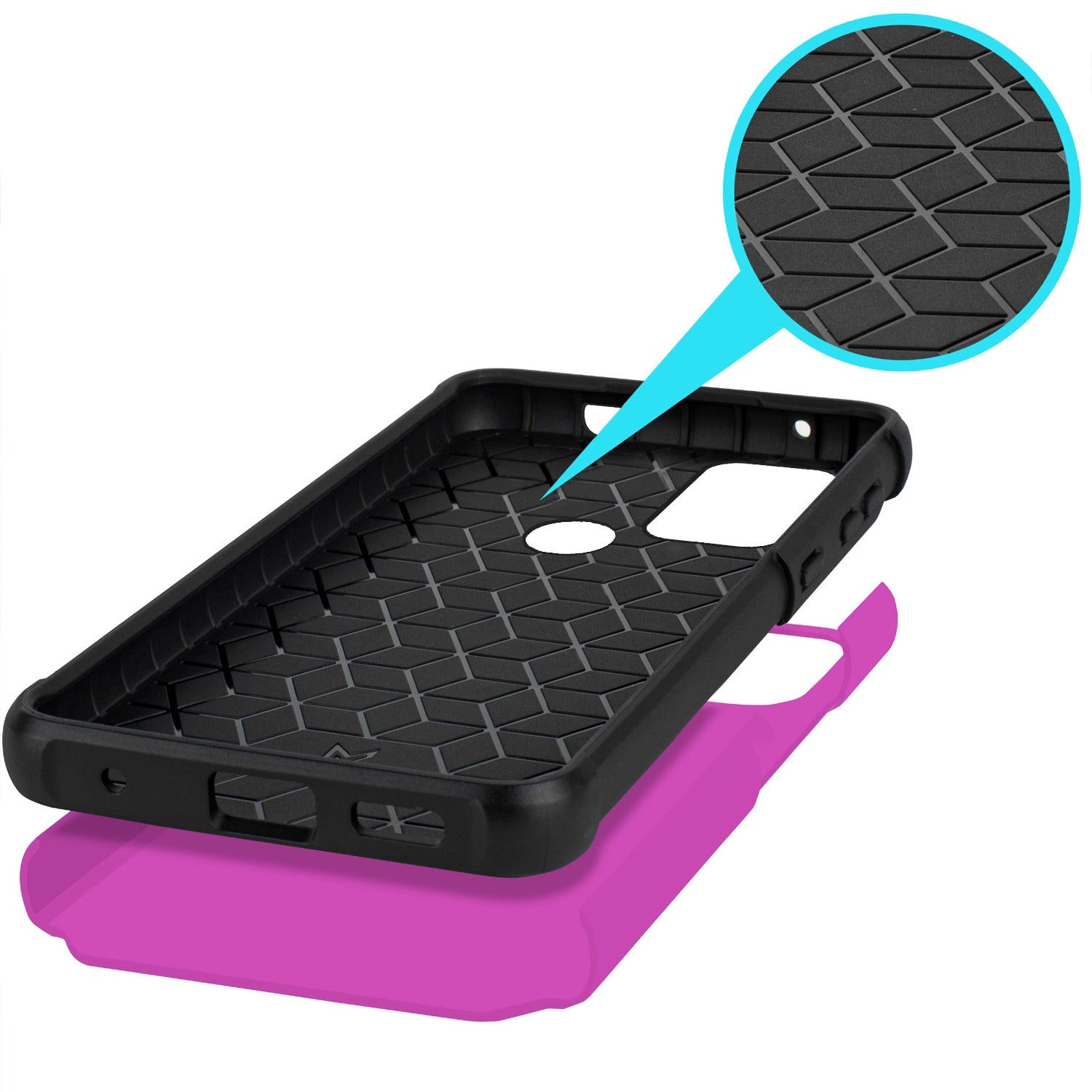 For TCL K32 5G Ultra Slim Corner Protection Shock Absorption Hybrid Dual Layer Hard PC + TPU Rubber Armor Defender Case Cover Fuchsia Pink